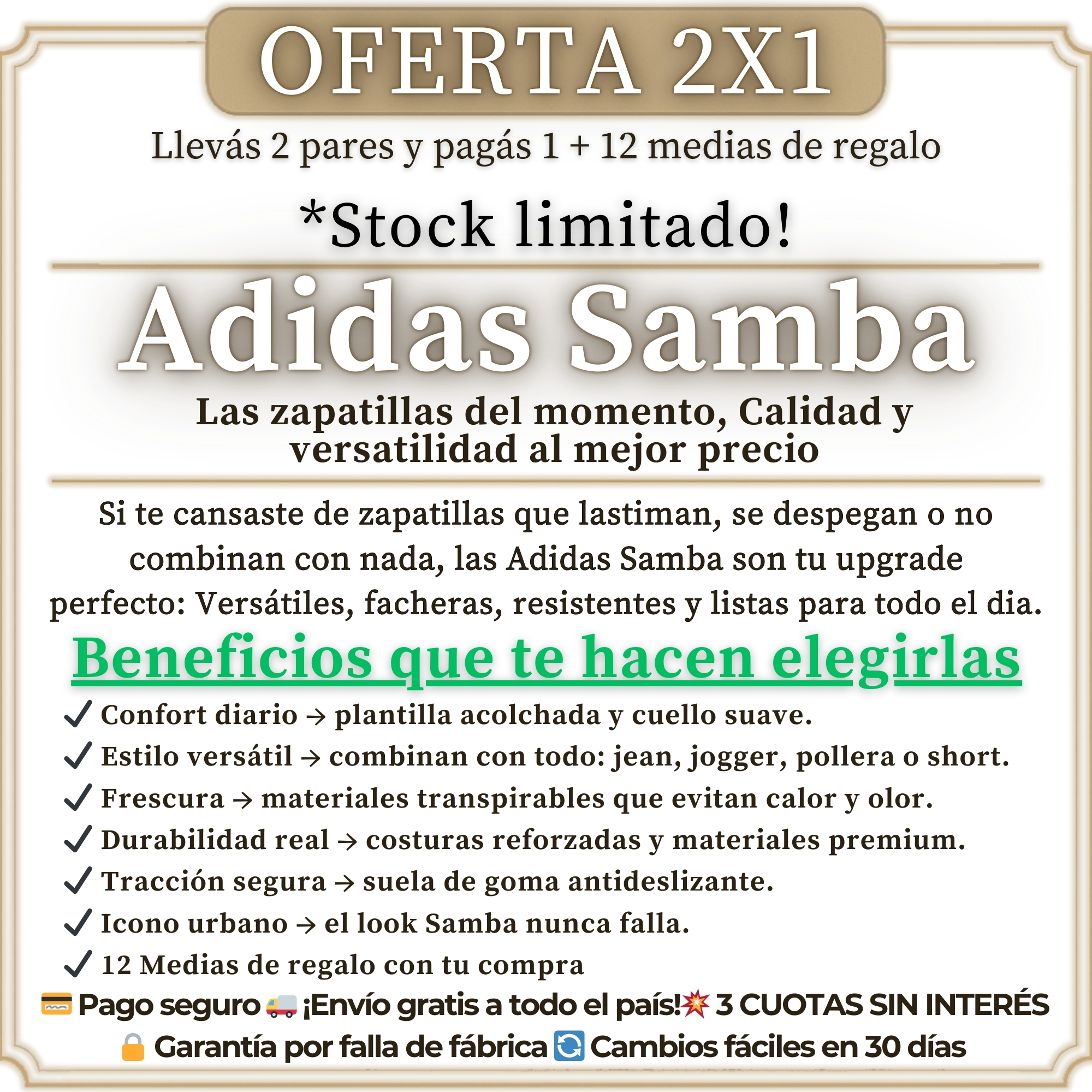 2x1 ADIDAS SAMBA + 12 PARES DE MEDIAS DE REGALO